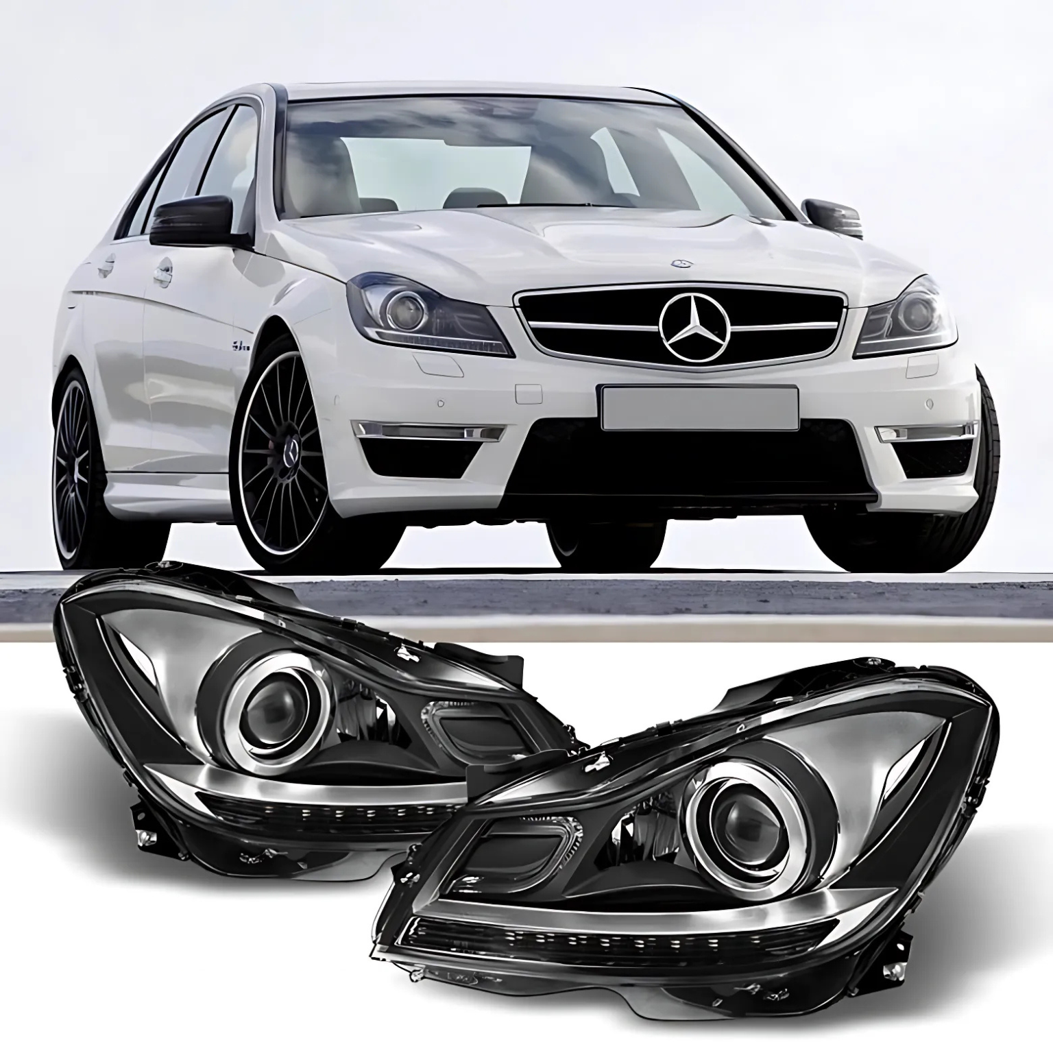 FOR 2012-2014 MERCEDES BENZ W204 PROJECTOR LED DRL HEADLIGHTS C63 AMG STYLE