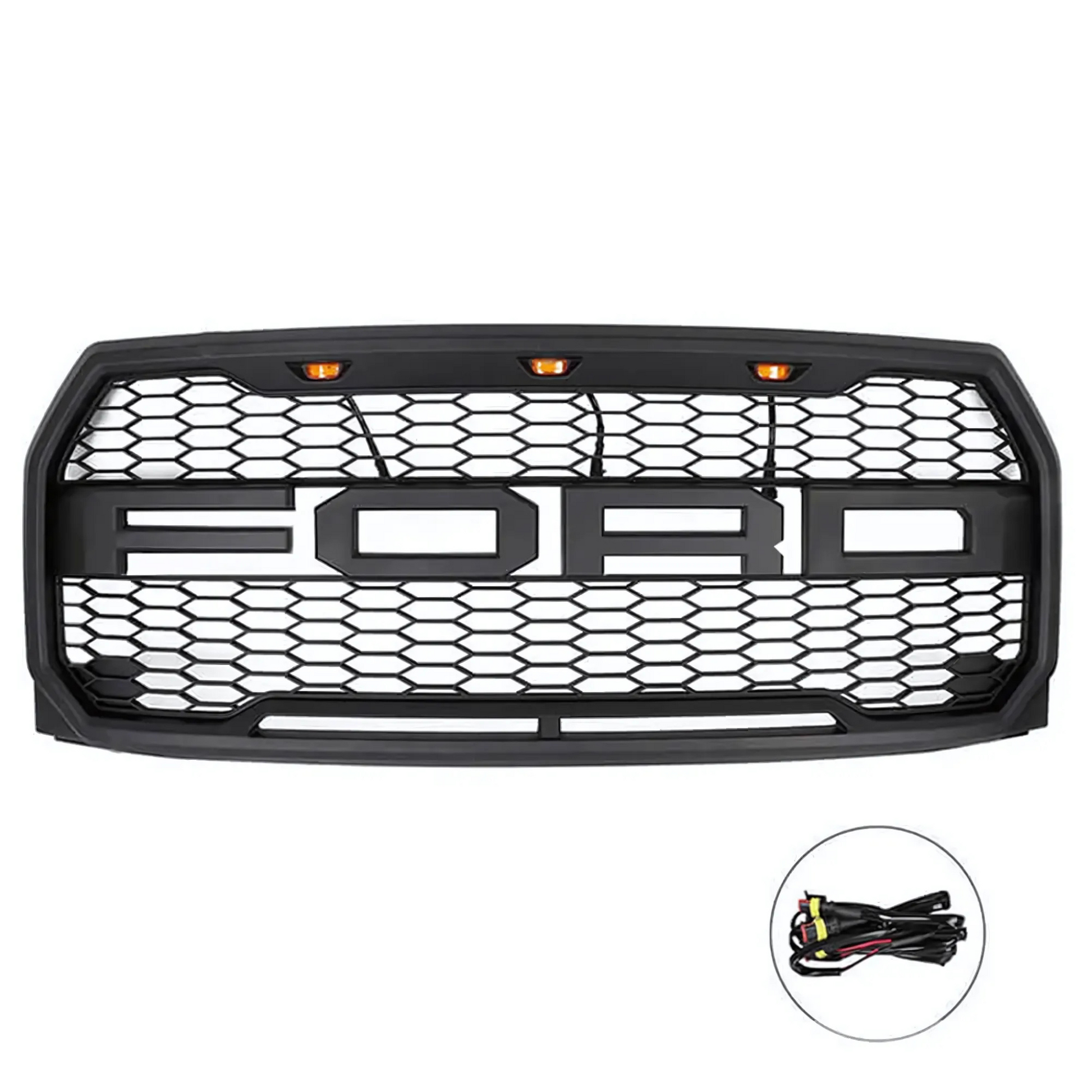 FOR 2015-2017 FORD F-150 RAPTOR STYLE Front Grille w/ Letters & LED Lights & Letters