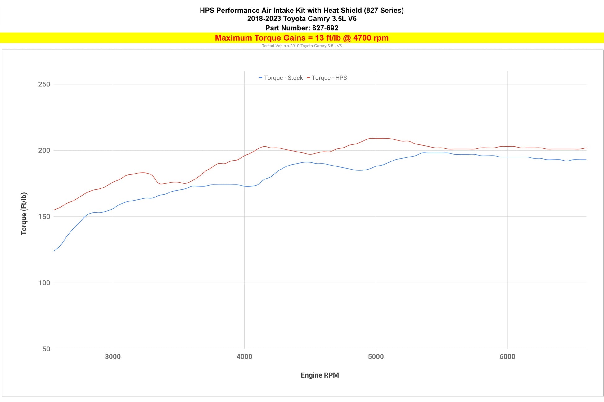 HPS Performance Air Intake Kits are designed with style and performance in mind. This HPS Performance Air Intake Kit replaces your restrictive stock intake tubing and air filter housing with a 3.25" mandrel-bent aluminum tube designed for your vehicle and includes a reusable high-flow cotton air filter for maximum power gains. The specially designed heat shield prevents radiant heat from entering the engine while allowing the sound of the 3.5 liter V6 engine to roar under acceleration. This intake kit features durable HPS silicone couplers and stainless steel T-bolt clamps that are engineered to perform under toughest driving conditions. Experience faster 0-60 times with dyno proven gains up to 12 horsepower and 13 lb-ft. of torque.