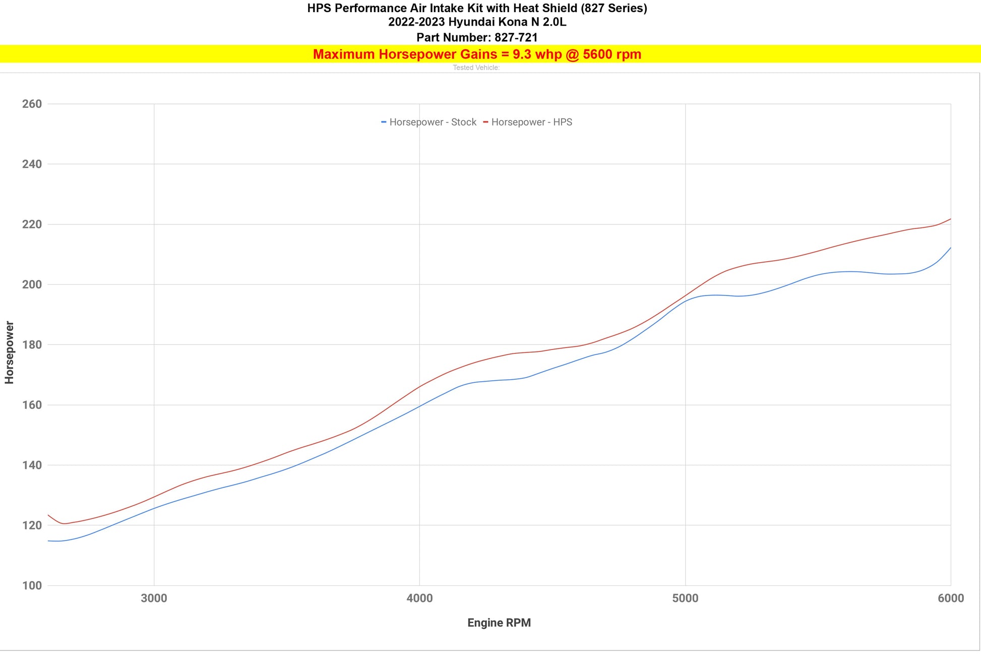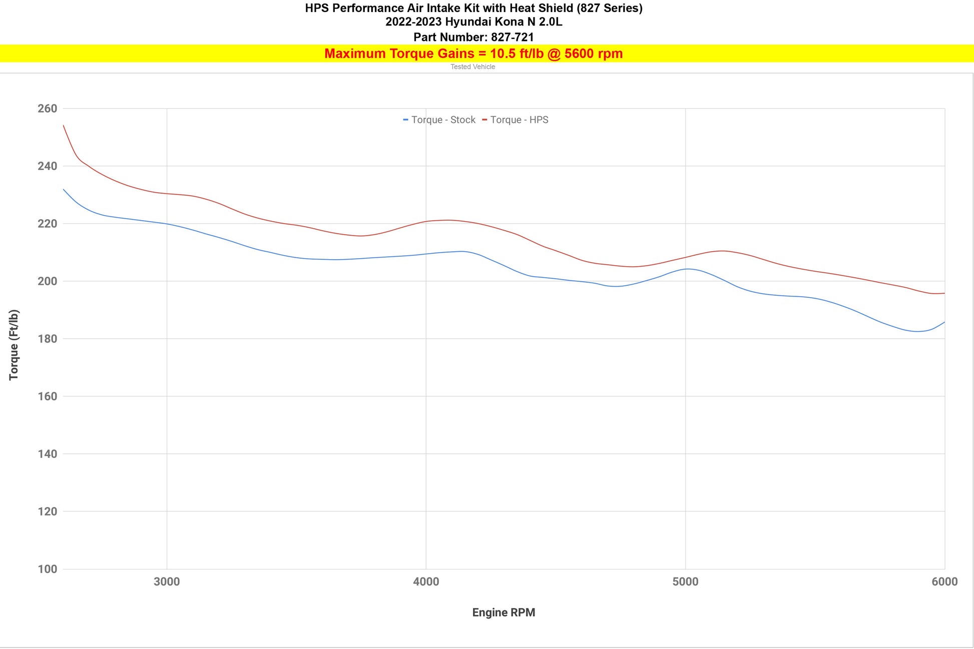 Enhance your driving experience with an HPS Performance air intake system designed to feature a 3” mandrel-bent aluminum intake tube and reusable high-flow cotton air filter, ensuring optimized air flow for your vehicle for a more powerful drive with dyno proven gains of up to 9.3 horsepower and 10.5 lb-ft. of torque. Made from heavy duty powder coated materials, the heat shield works to block out radiant heat from the engine to keep IATs at bay. This kit includes high temperature resistant silicone reducing couplers and 100% stainless steel T-bolt clamps, providing exceptional durability even under the harshest driving conditions. The benefits of this upgrade are instantly noticeable. Under heavy throttle, you'll experience a more intense induction sound and improved acceleration response, adding an exhilarating thrill to your ride regardless of where you’re headed. Requiring only a few basic tools and absolutely no additional modifications, this easy to install kit saves you time and effort under the hood. Spend less time tinkering and more time enjoying the performance boost this intake kit offers.