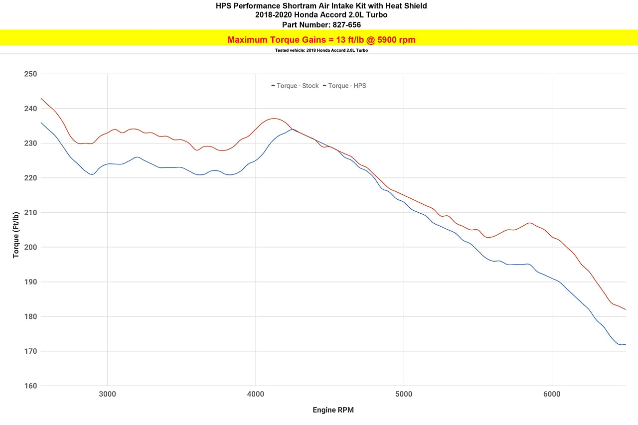 The All-New HPS Performance 827 Series Air Intake Kit (Blue, Part # 827-656BL) for 2018-2020 Honda Accord 2.0L Turbo offers a free-flowing 3 inch mandrel-bent aluminum tube induction system designed to produce dyno proven performance gains +15 Whp horsepower, +13 Ft/lbs torque and improve throttle response while maintaining safe air fuel ratio. The heavy duty powder coated steel heat shield integrates with the factory fresh air scoop to direct cold air to the air filters for the best cooling effect. The included installation manual has clear pictures and instructions to guide the installer throughout the whole process. The kit does NOT require tuning and does not trigger CEL light. No modification is required during the installation. HPS light weight mandrel-bent aluminum alloy tubes replace the stock restrictive air box and optimize the air flow with long lasting durability. HPS Performance 827 Series air intake kit features race proven reinforced silicone hoses and industrial grade 100% stainless steel T-bolt clamps which ensures reliability, even during the most extreme driving conditions. The All-New HPS Performance Air Filter is designed with performance in mind, delivering excellent filtration without sacrificing air flow. All HPS Performance Air Filters are made in the United States.