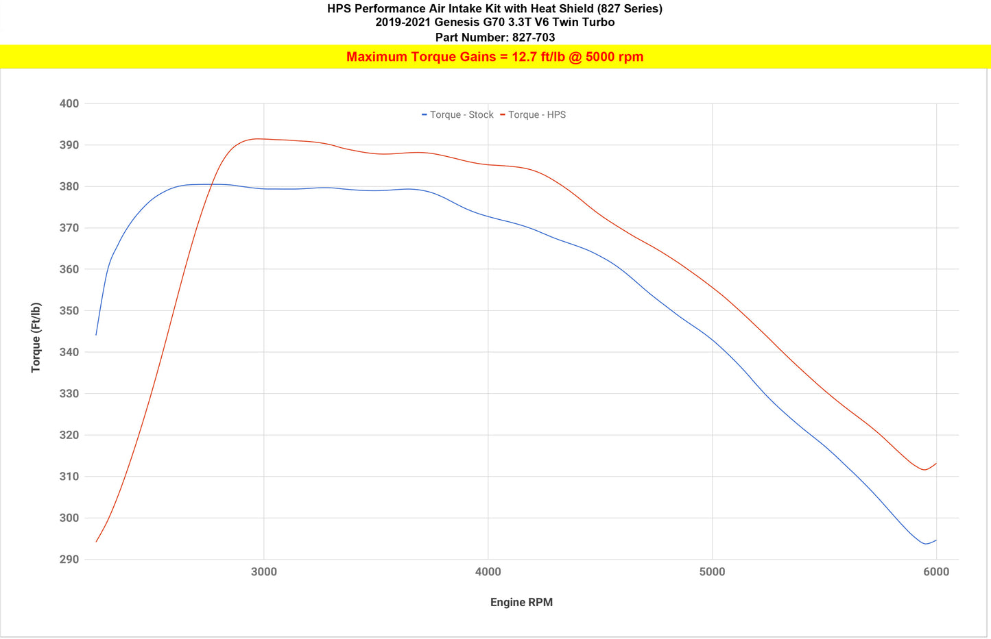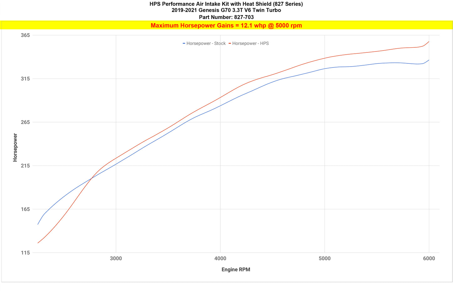 HPS Performance Air Intake Kits are designed with style and performance in mind. This HPS Performance Air Intake Kit replaces the factory intakes and air filter housings with two 2.75" custom mandrel-bent aluminum tubes and two heavy duty powder coated heat shields designed to maximize the performance of your vehicle. It includes two reusable high-flow cotton air filters to provide maximum airflow to increase your engine's output by up to 12.1 horsepower and 12.7 lb-ft. of torque for power you can feel through improved throttle response and acceleration. This kit includes both HPS 100% stainless steel T-bolt clamps and 3-ply reinforced silicone couplers that are engineered to withstand the toughest driving conditions. HPS Performance Air Intake Kits are designed and tested using the latest technology to ensure the best performance and fitment.