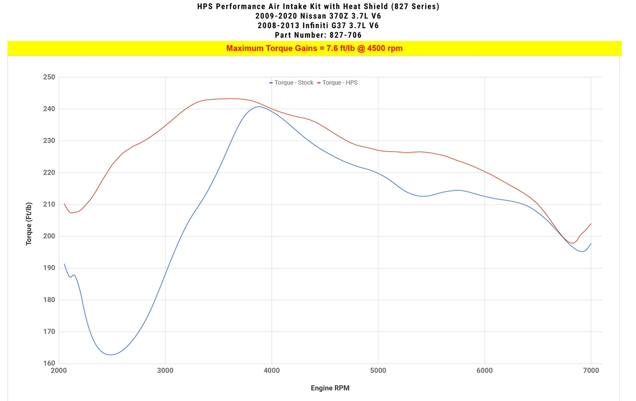 HPS Performance Air Intake Kits are designed with style and performance in mind. This HPS Performance Air Intake Kit replaces the factory intakes and air filter housings with 2.75" custom mandrel-bent aluminum tubes and heavy duty powder coated heat shields designed to maximize the engine's output. It also includes reusable high-flow cotton air filters to provide maximum airflow. Dyno testing proved power gains of up to 11 horsepower and 7.6 lb-ft. of torque that's felt through improved throttle response and acceleration. This kit comes with both HPS 100% stainless steel T-bolt clamps and silicone couplers that are engineered to withstand the toughest driving conditions. HPS Performance Air Intake Kits are designed and tested using the latest technology to ensure the best performance and fitment.