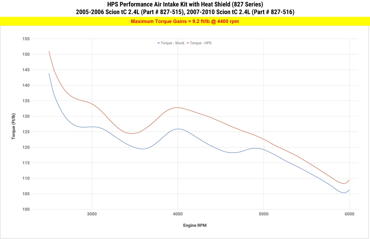 HPS Performance Air Intake Kits are designed with style and performance in mind. This HPS Performance Air Intake Kit replaces the restrictive factory intake and air filter housing with a 3" custom mandrel-bent aluminum tube and powder coated heavy duty heat shield designed to maximize the performance of your vehicle. It includes a reusable high-flow cotton air filter to provide maximum airflow to increase your engine's output by up to 7.9 horsepower and 9.2 lb-ft. of torque for performance that you can feel through improved throttle response and acceleration. This kit includes HPS 100% stainless steel T-bolt clamps and a 3-ply reinforced silicone reducer coupler, both engineered to withstand the toughest driving conditions. HPS Performance Air Intake Kits are designed and tested using the latest technology to ensure the best performance and fitment.