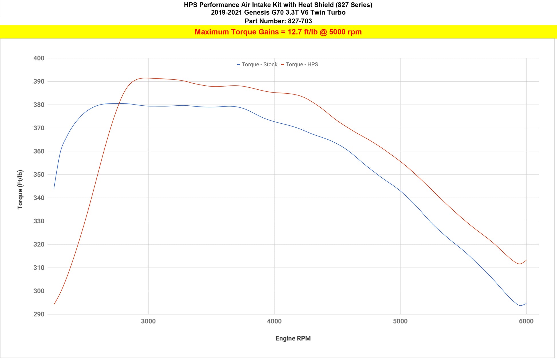 HPS Performance Air Intake Kits are designed with style and performance in mind. This HPS Performance Air Intake Kit replaces the factory intakes and air filter housings with two 2.75" custom mandrel-bent aluminum tubes and two heavy duty powder coated heat shields designed to maximize the performance of your vehicle. It includes two reusable high-flow cotton air filters to provide maximum airflow to increase your engine's output by up to 12.1 horsepower and 12.7 lb-ft. of torque for power you can feel through improved throttle response and acceleration. This kit includes both HPS 100% stainless steel T-bolt clamps and 3-ply reinforced silicone couplers that are engineered to withstand the toughest driving conditions. HPS Performance Air Intake Kits are designed and tested using the latest technology to ensure the best performance and fitment.