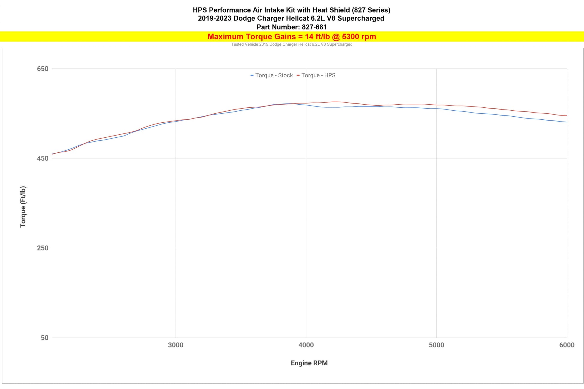 This HPS Performance Air Intake Kit delivers a performance-focused upgrade that enhances both the power and driving experience of your Dodge Charger Hellcat. This HPS Performance Air Intake Kit gives a noticeable boost in performance with an increase of 14 horsepower and 14 lb-ft of torque, providing with an exhilarating experience behind the wheel. In addition to the power gains, this intake kit a improves the induction sound. The enhanced sound gives a more aggressive and throaty tone to your supercharged V8 enigne, adding a different kind of thrill and excitement to your drive. This kit features 5" mandrel-bent aluminum intake tubing. The larger diameter tubing allows for a smoother and less restrictive airflow into the supercharged engine, maximizing its potential for increased performance. Included in the kit is a reusable air filter. This high-quality filter provides excellent filtration capabilities while allowing maximum airflow. It can be easily cleaned and reused, offering long-term cost savings compared to disposable filters. This kit also comes with an HPS 3-ply high temperature resistant coupler and HPS 100% stainless steel embossed hose clamps that are designed to withstand even the most demanding operating conditions without compromising performance. To protect the air filter from moisture during rainy conditions, this kit is equipped with a custom heat shield and a removable rain shield. The heat shield effectively isolates the intake air from high engine bay temperatures, maintaining cooler intake air temperatures for optimal performance. The removable rain shield provides additional protection, ensuring that the air filter remains dry in most rain conditions. This bolt-on performance upgrade comes with easy to follow instructions and requires some special tools to complete. Enjoy maximum power from your Hellcat with minimal installation effort.