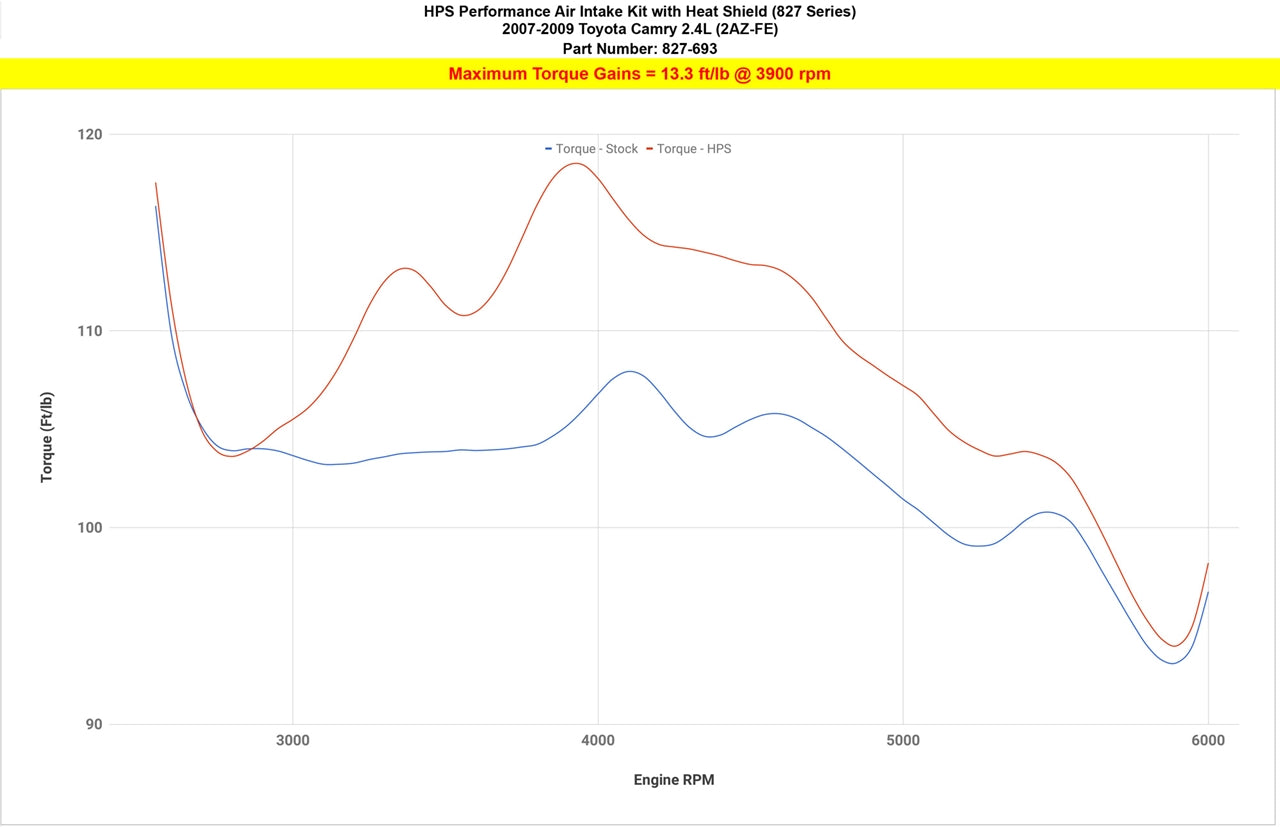 HPS Performance Air Intake Kits are designed with style and performance in mind. This HPS Performance Air Intake Kit replaces the factory intake and air filter housing with a 3" custom mandrel-bent aluminum tube and heavy duty powder coated heat shield designed to maximize the performance of this vehicle. The heat shield integrates with the factory air scoop and features a lid to keep intake air temperatures cool. It also includes a reusable high-flow cotton air filter to provide maximum airflow to increase the engine's output by up to 9.9 horsepower and 13.3 lb-ft. of torque for power that's felt through improved throttle response and acceleration. This kit features both HPS 100% stainless steel T-bolt clamps and a silicone reducer coupler that are engineered to withstand the toughest driving conditions. HPS Performance Air Intake Kits are designed and tested using the latest technology to ensure the best performance and fitment.
