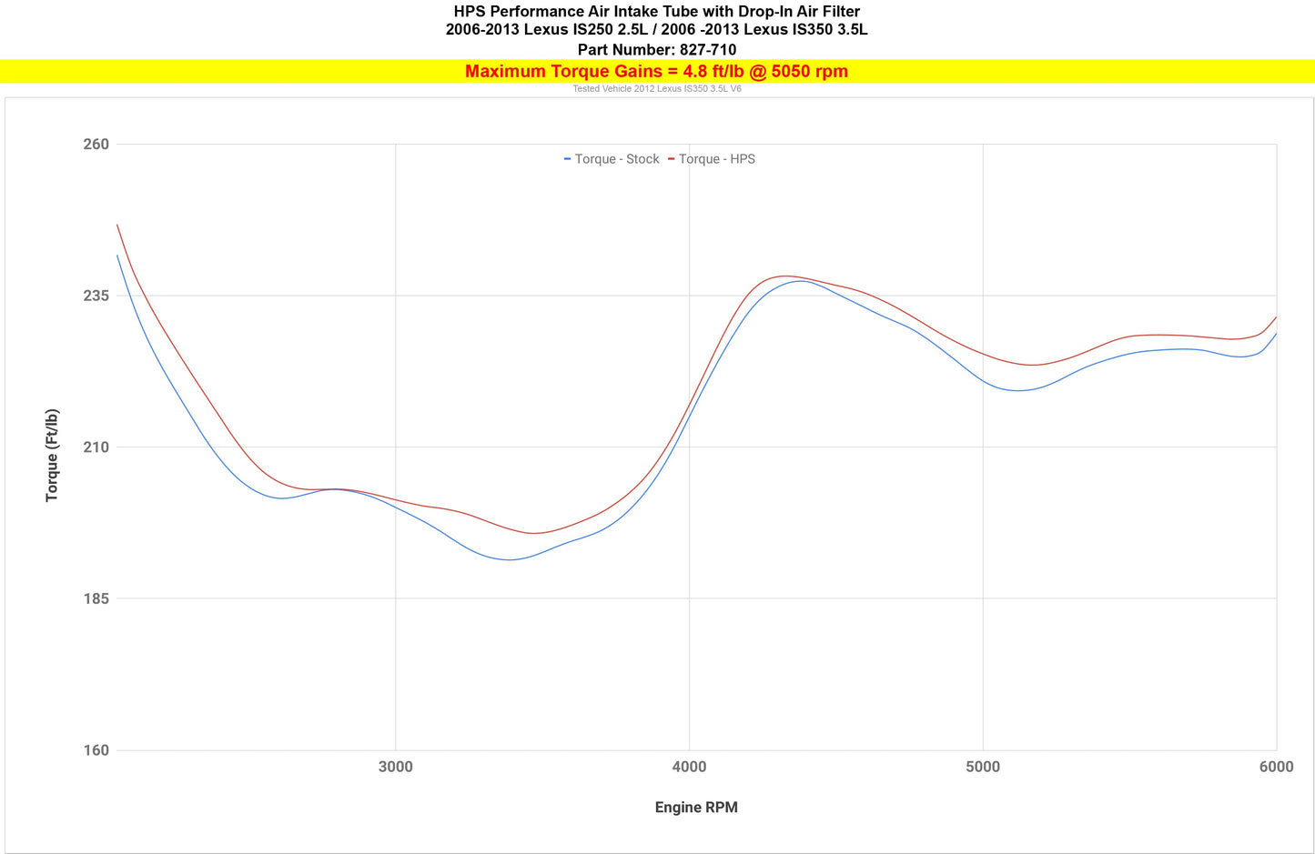 HPS Performance Air Intake Kits are designed with style and performance in mind. HPS Performance Air Intake Kit 827-710 replaces the factory rubber intake tube with smooth mandrel-bent aluminum tubing and reusable high-flow cotton air filter for improved air flow and increase of 4.6hp horsepower and 4.8 lb-ft torque. This intake incorporates the stock air box to keep induction noise low when cruising, and a stronger induction tone on acceleration.