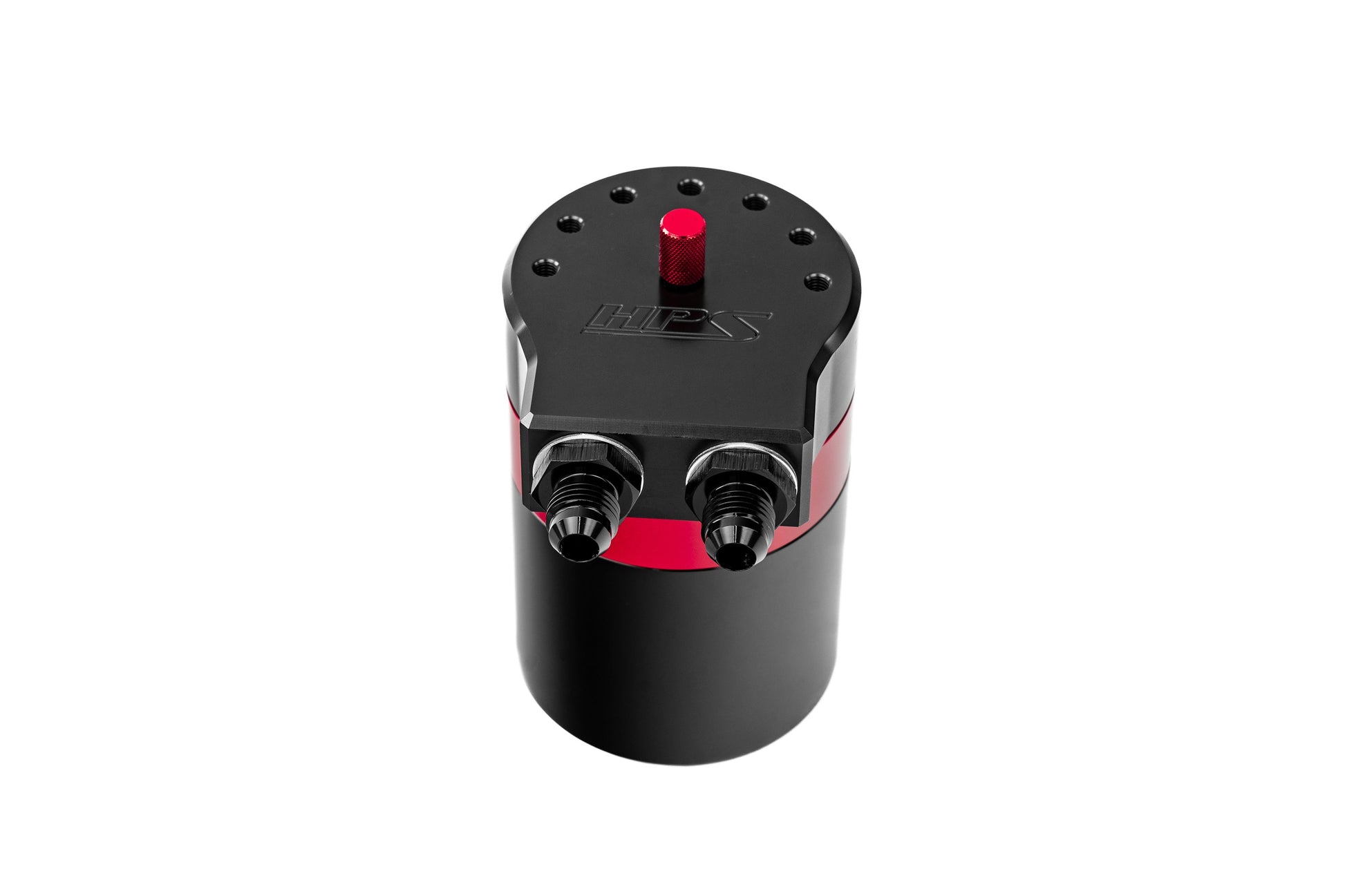 If maximizing the performance of your sports hatch is what you're after, the HPS Performance Oil Catch Can Kit is the a must-have. This oil catch can kit filters out oil and water vapors that normally enters through the PCV system, effectively raising the octane content in the combustion chamber. This kit also reduces carbon build-up on the intake valves which is an inherent issue found on direct injected engines. Machined from billet aluminum, the HPS oil catch cans features built-in diverters and baffles to trap and separate the harmful contaminants. The screw-on cup is a solid one piece design with a completely sealed base which eliminates any leaks that are common on other catch cans on the market. The bottom of the cup features a 14mm hex that fits a wrench or socket when it comes time for service. The screw-on dipstick lets you easily monitor the fill level without disassembling the catch can. With a 5oz capacity, this catch can provides plenty of room to capture blow by and lengthens the time between maintenance intervals. This HPS Performance Oil Catch Can Kit includes a custom designed and powder coated steel bracket that mounts to the firewall using existing factory mounting points, allowing ample room for serviceability and includes pre-assembled hoses and -6 AN fittings for a premium experience and hassle-free bolt-on installation.