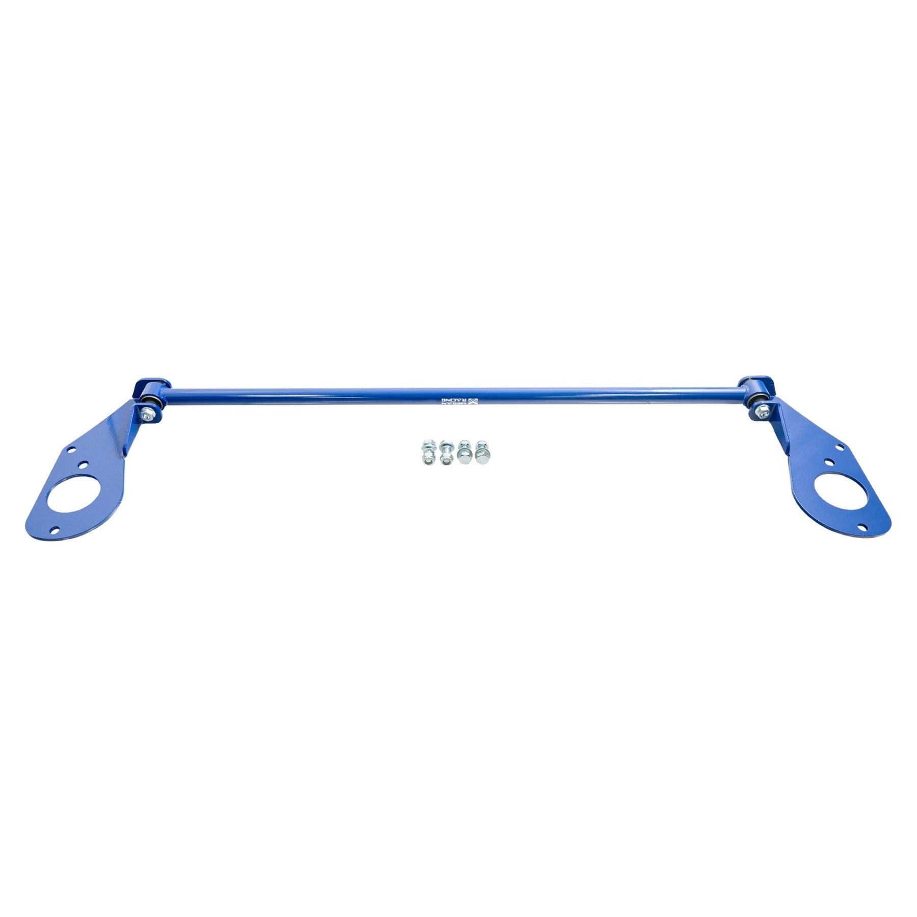 On compact vehicles equipped with a Torsion Beam suspension. The conventional subframe and control arm configuration is replaced with a singular twisting beam assembly which connects both wheels together and will tent to excessively flex during hard cornering conditions. Adding our Support brace will add an additional contact point on the torsion beam and help reduce uneven deflection to aid in cornering response and overall grip.