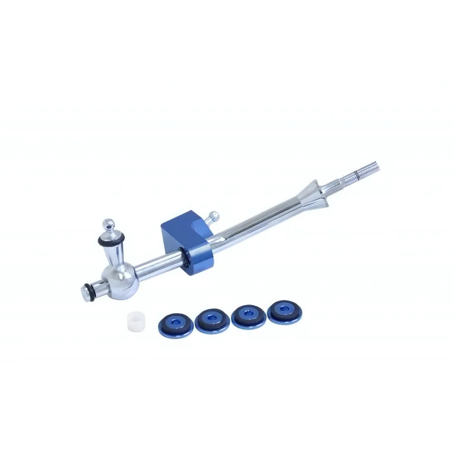 The throw is reduced up to 40%, and shift knob height is reduced by 1 to 3 inches depending on the model. These shifters provide a more precise shift and allows for quicker shifting without drastically changing the overall driving experience. They have been designed specifically for the more aggressive tuner who demands the most extreme shifter in terms of both looks and performance