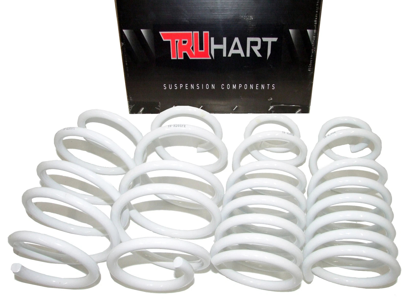 TruHart Lowering Springs are a cost-effective way to reduce wheel gap and improve performance. TruHart springs are a progressive rate spring that is about 20% stiffer than your OEM springs, offering a comfortable yet sporty ride. TruHart Lowering Springs match perfectly with TruHart's Sport Shocks; however, are also compatible with OEM or aftermarket shocks. Manufactured from cold wound 55 chrome silicon steel in an ISO 9001 and TUV approved facility these springs exceed OE standards.