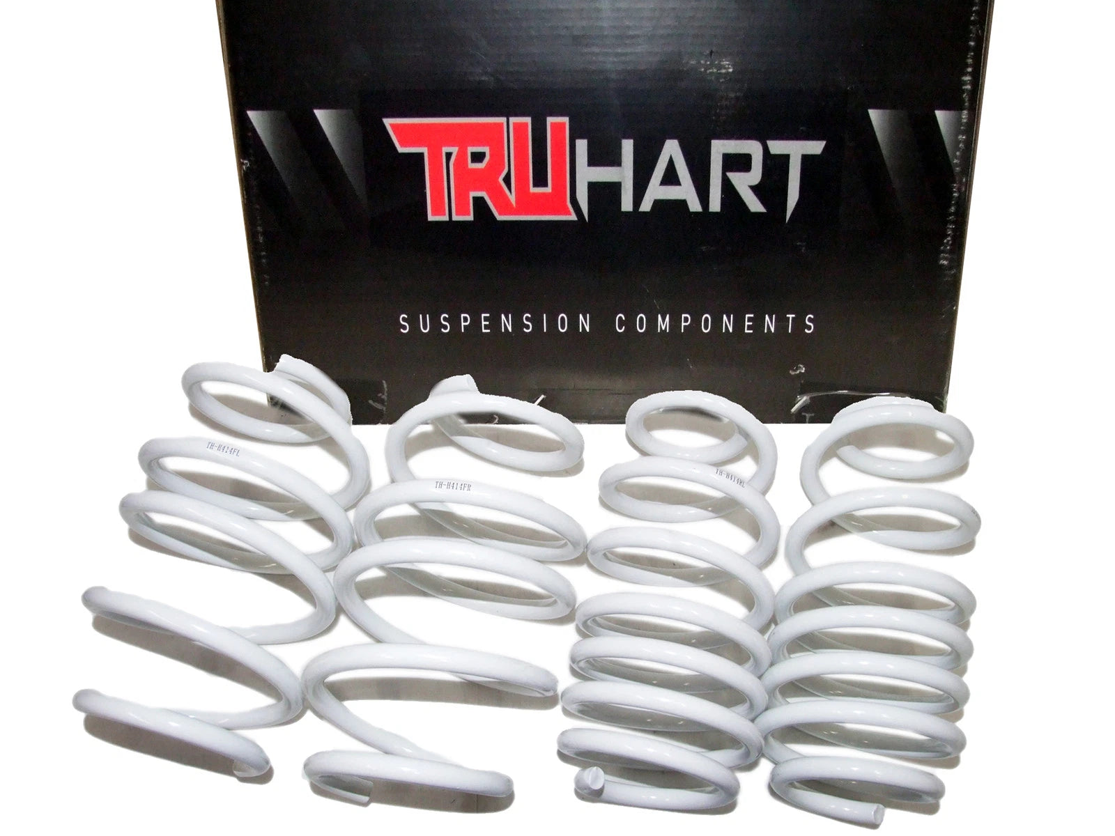 TruHart Lowering Springs are a cost-effective way to reduce wheel gap and improve performance. TruHart springs are a progressive rate spring that is about 20% stiffer than your OEM springs, offering a comfortable yet sporty ride. TruHart Lowering Springs match perfectly with TruHart's Sport Shocks; however, are also compatible with OEM or aftermarket shocks. Manufactured from cold wound 55 chrome silicon steel in an ISO 9001 and TUV approved facility these springs exceed OE standards.