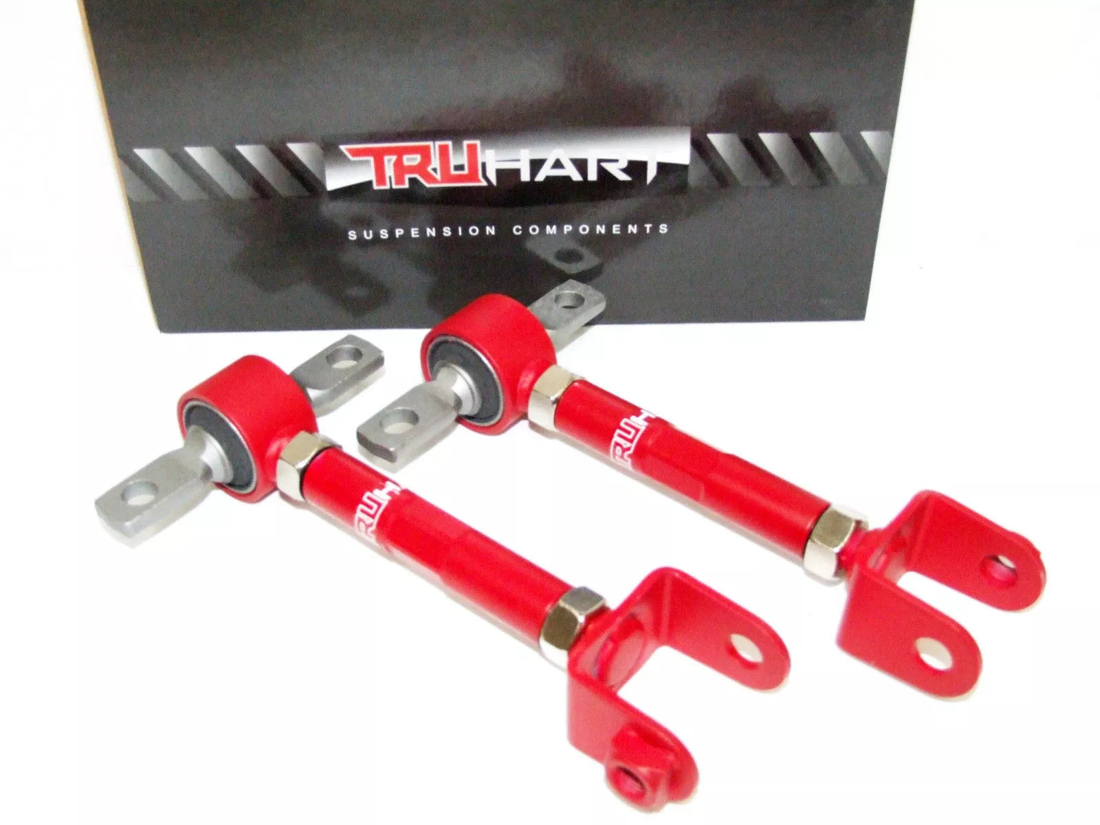 TruHart rear camber arms replace your factory arm with a strengthened adjustable arm. TruHart's camber kits utilize hardened rubber bushings which allows for less deflection and provides a more direct feel road feel than OE bushings.