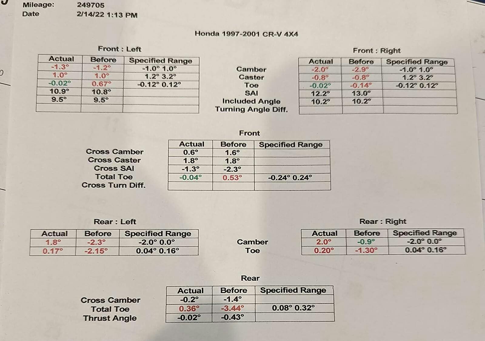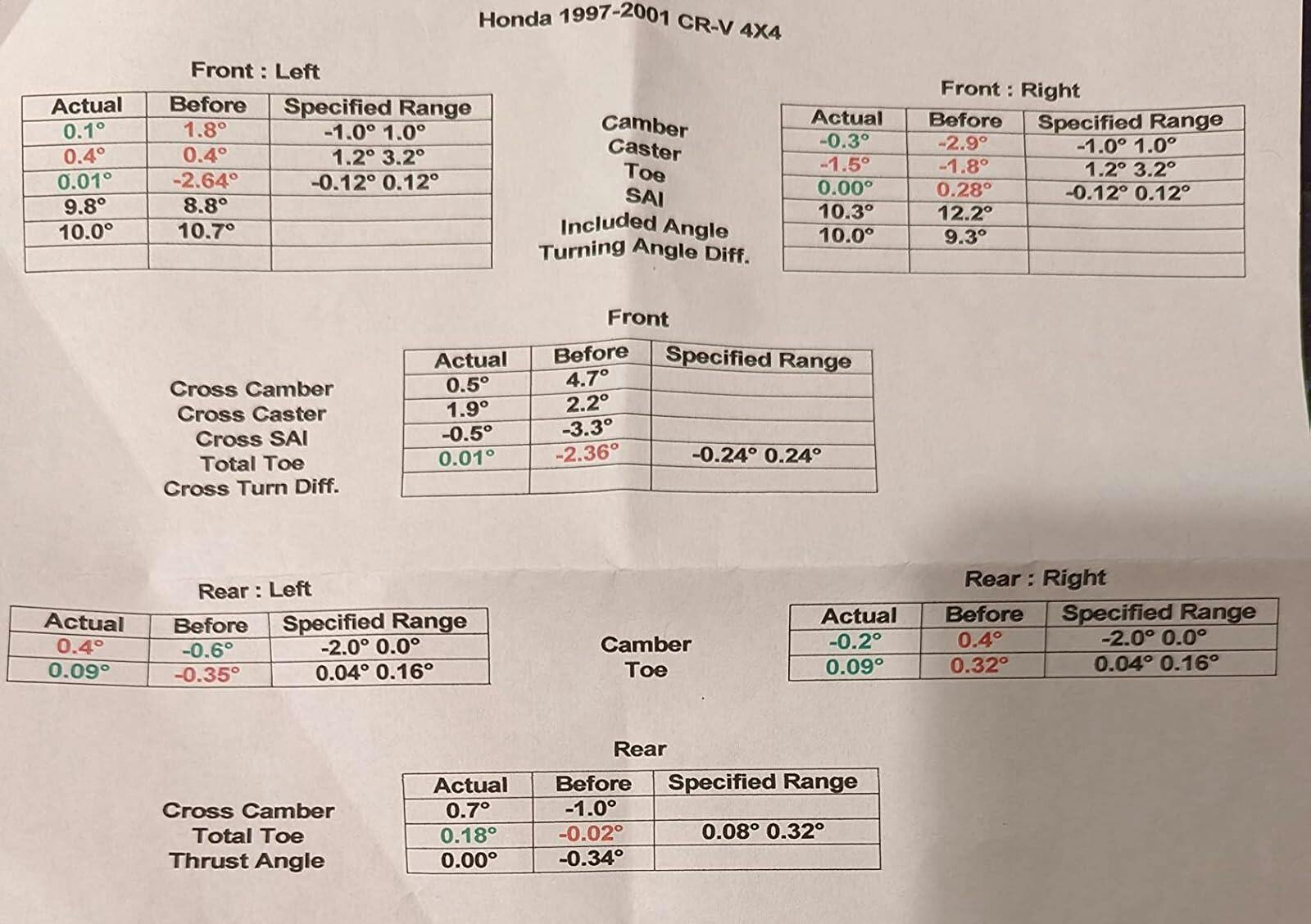I installed these on my 99 cr-v and they are amazing. Even the alignment shop were very impressed. Made the alignment more precise. Awesome part from a great company.
