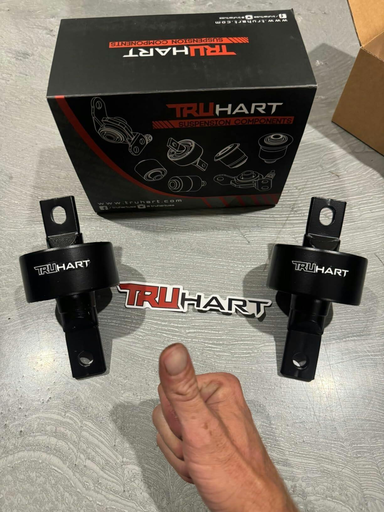 TruHart trailing arm bushings replace your worn factory units with hardened rubber units reducing deflection and providing a more direct road feel.